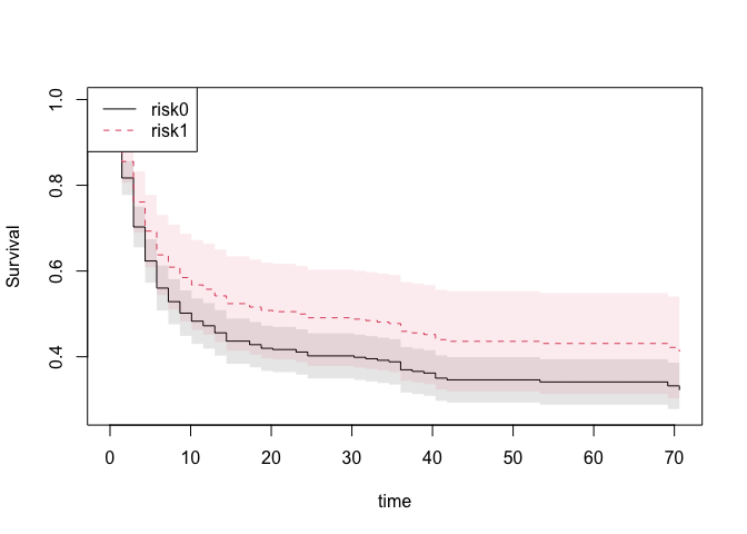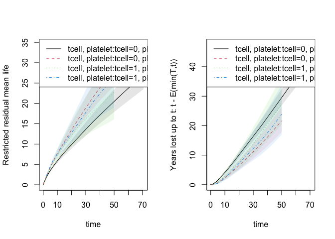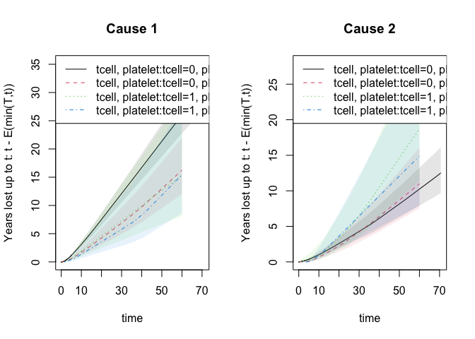 #> [6,] -0.001404172 0.0009472093or the the restricted mean survival or years-lost to cause 1